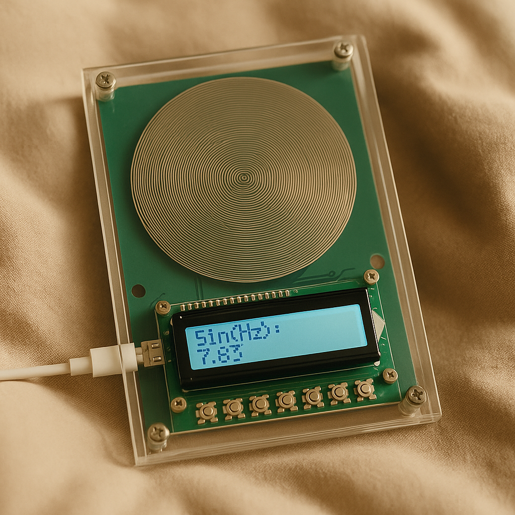 It emits gentle, natural sine-wave frequencies — subtle, body-safe signals that help your nervous system return to balance.
